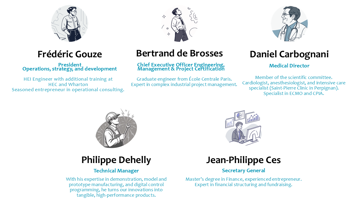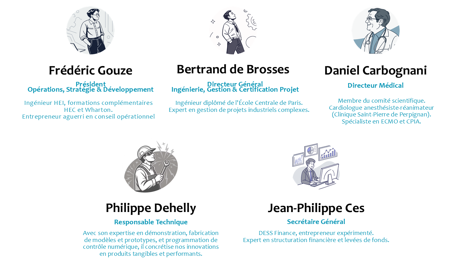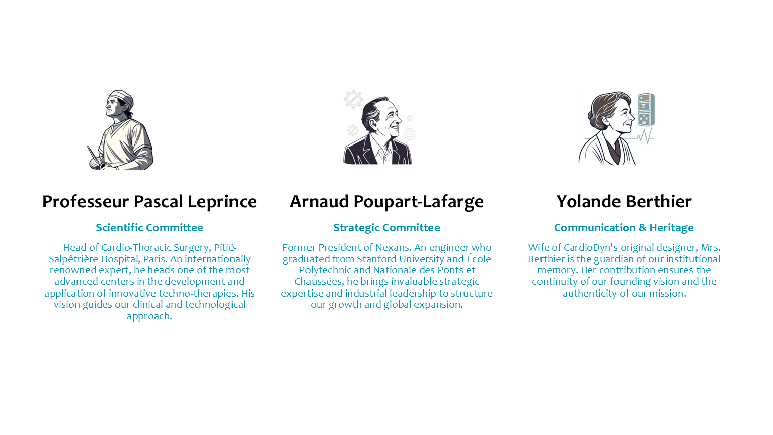 Notre équipe de direction réunit une expertise reconnue dans le développement de dispositifs médicaux critiques de classe III, la recherche clinique et la stratégie d'entreprise. Animés par une mission essentielle, nous œuvrons à faire de CardioDyn la référence en assistance cardiaque mécanique temporaire, transformant la prise en charge des patients et contribuant à sauver des vies.